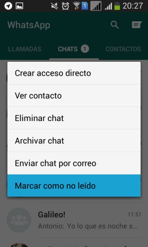 Desactivar los recibos de lectura para una persona de whatsapp